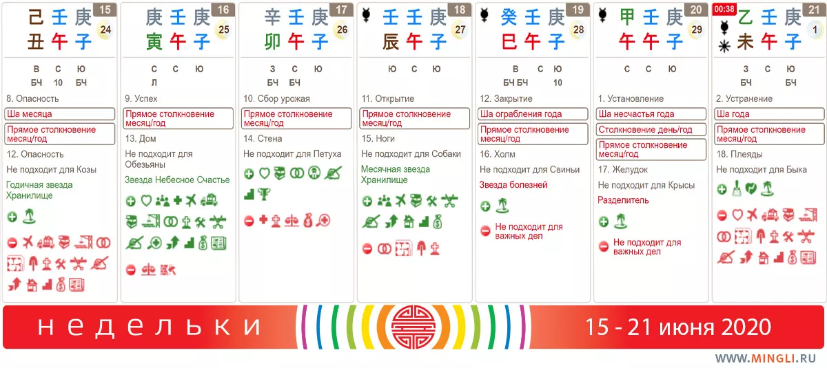 15 июня, понедельник. Суетливый денек, который может “подставить ножку”. Будьте внимательны, если в вашей карте бацзы есть парочка Бык и Лошадь: продумывайте свои действия, отложите экстрим на потом. Всем остальным могут досаждать задержки, замедления и мелкие неприятности. Спортом занимайтесь умеренно, дорогу переходите только на зеленый свет.