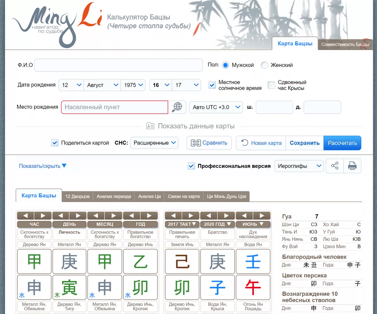 «Калькулятор бацзы не показывает саму карту, а только стропы удачи. Не работает?». Пожалуйста, читайте наши статьи об обновлениях! Там подробно описано, как справиться с такими проблемами.  Как так, сайт несколько недель показывает ерунду, а вы нам не пишете?? Пишите сразу же, если что.