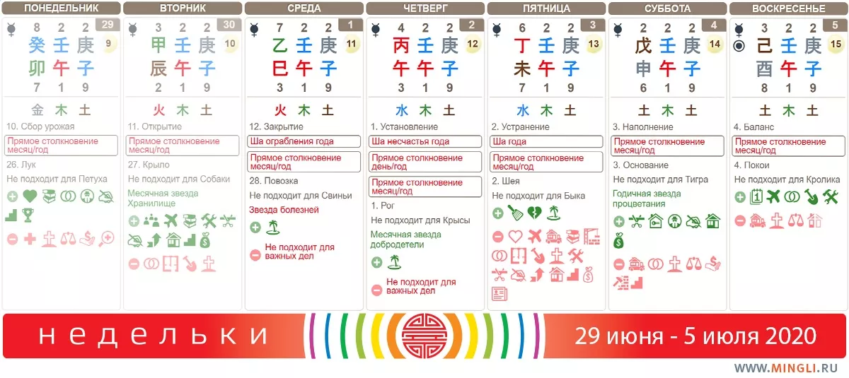 2 июля, четверг. Отдыхаем! Особенно те, кому вреден сильный огонь, у кого есть проблемы с почками, сердцем; Крысо-Лошади в вашей карте бацзы также должны насторожить и намекнуть, что день стоит провести спокойно. Как им, так и всем остальным стоит перенести занятия экстремальными видами спорта и быть осторожнее за рулем.