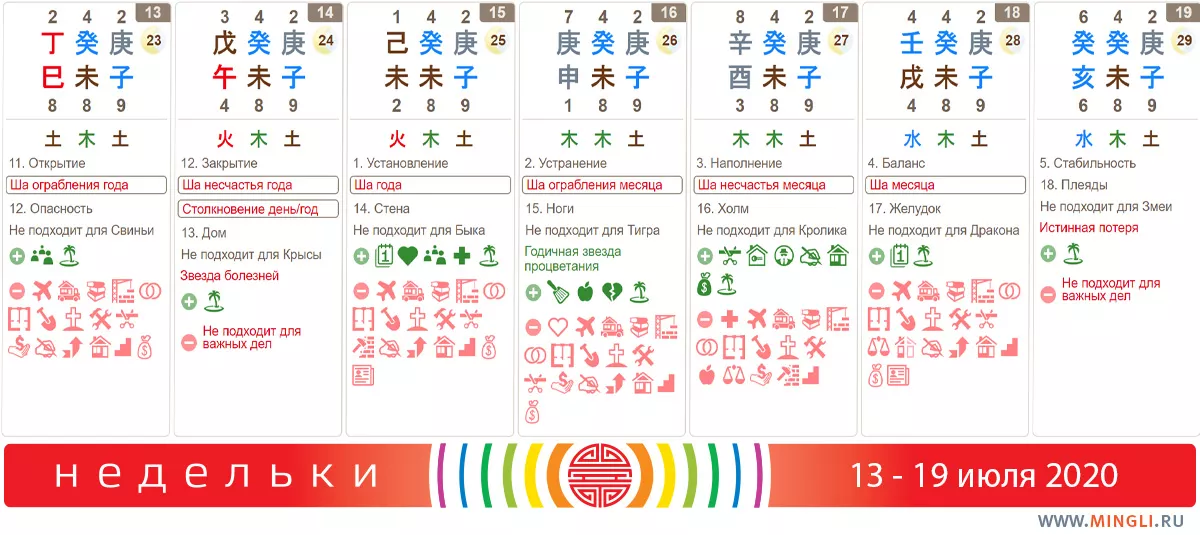 16 июля, четверг. День годится для расчистки пространства: разберите бумаги на столе, разложите вещи в шкафу. Один маленький совет - лучше заняться именно сортировкой, но ничего не выкидывать, а то завтра вполне можете обнаружить, что нужные чеки или книжка с заначкой отправились на помойку. Упс. Так что немного ограничьте свое стремление к порядку. Хорошо садиться на диету, особенно, если вы родились в день Тигра. Как и в понедельник, не рекомендуется заниматься финансами, важными бумагами и путешествовать. День что сегодня, что завтра чистометаллический, поэтому если металл хорош для вашей карты бацзы - наслаждайтесь, если же нет - то ничего важного не планируйте.