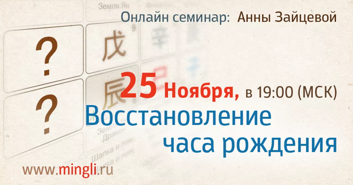 На вебинаре вы узнаете, как восстановить час рождения с помощью бацзы.