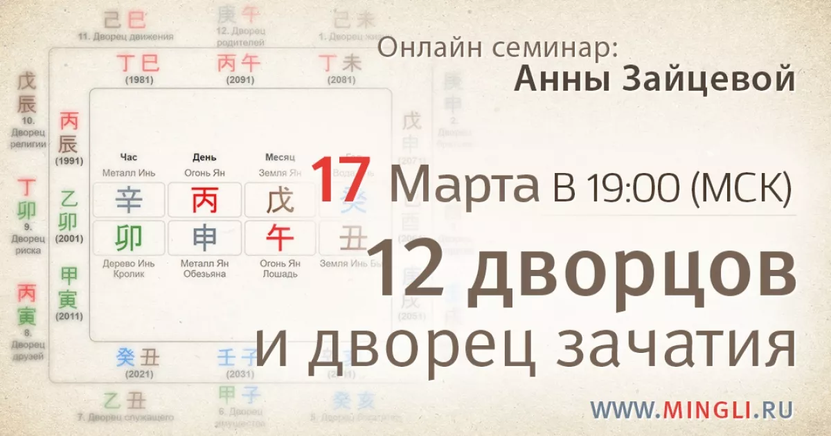 17 марта пройдет очередной вебинар-практикум по этой теме (они бывают пару раз в год). Мы приглашаем на него всех, кто знает основы бацзы и умеет определять силу/слабость карты и полезные элементы, знаком с системой 10 богов.