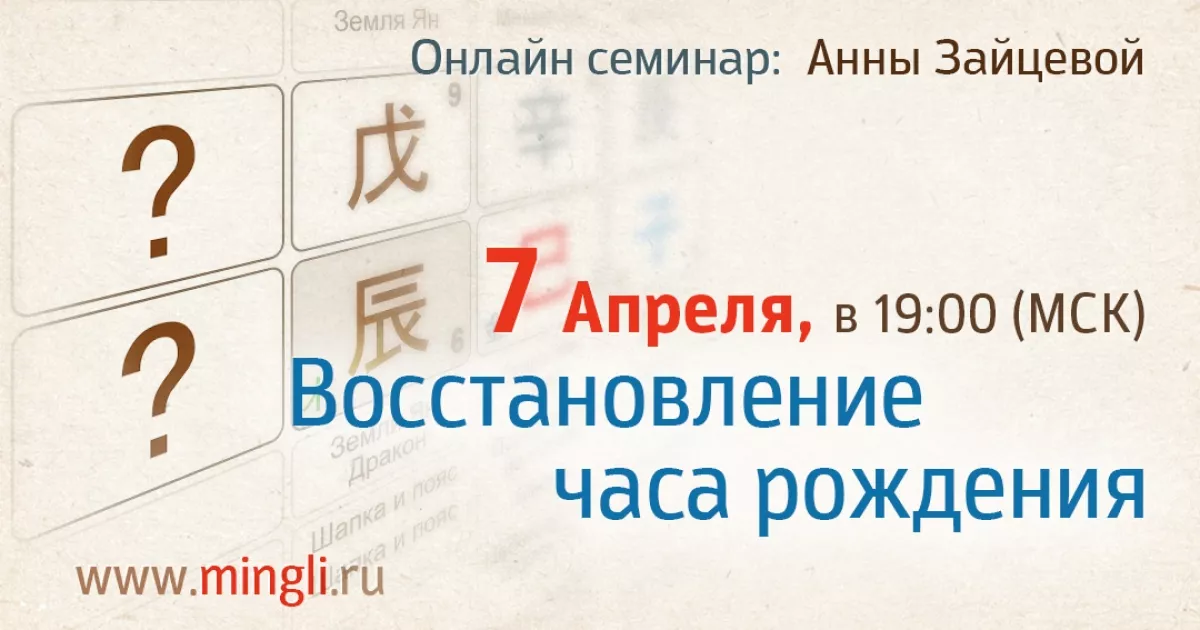 На вебинаре вы узнаете, как восстановить час рождения с помощью бацзы. Присоединяйтесь!