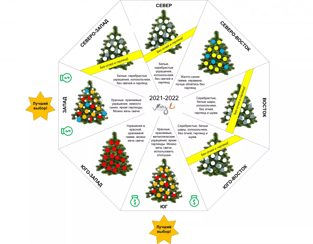 2. Прикиньте, можете ли вы поставить ёлочку в западной или южной комнате (соответственно на З или Ю).