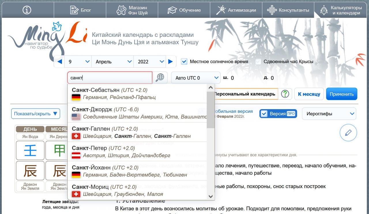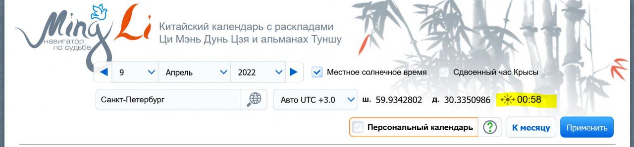 Скажите пожалуйста калькулятор Ба цзы считает с учетом перевода времени в определенном месте в определенные годы? На разных калькуляторах показывает то +2, то +3 часа из-за перевода часов и карта меняется. Или надо самому выяснять какое время было и проставлять вручную?