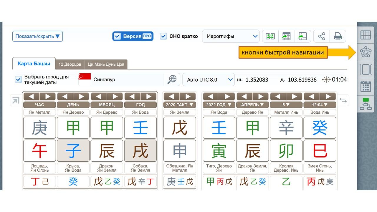 Сбоку появились кнопочки быстрой навигации – кликая по ним, вы можете моментально передвигаться по карте бацзы и всей сопутствующей информации – тактам, годам, детским тактам, дереву родственников. Этих кнопочек скоро станет больше 😉