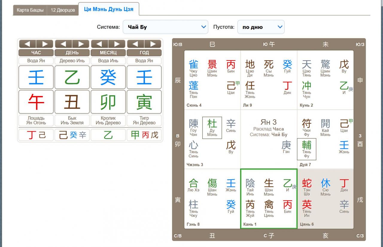 А во вкладке Ци Мэнь в кальке Бацзы теперь просто найти Дворец Жизни (если вы еще не знаете об этом) – он выделен зеленой рамочкой.