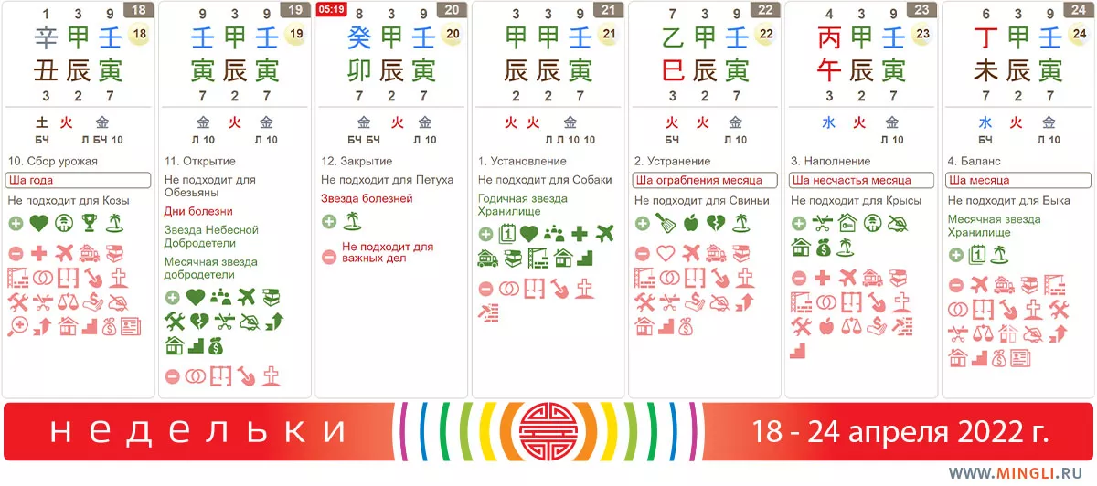 21 апреля, четверг. День очень нежный, не стоит предпринимать активных действий, ведущих к далеким целям. Побудьте «здесь и сейчас», посвятите время общению, переговорам; можно также покупать ценные вещи. Если в вашей карте бацзы есть столп янское Дерево на Собаке или янское Дерево на Драконе – отнеситесь к событиям дня внимательнее, не рискуйте понапрасну.