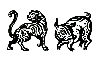 Вторая пара – Тигр и Свинья. Один – свирепый, другой – добрый. Если мы выбираем жестокость и стальную непреклонность, то можем легко сломаться, после чего нам сложно будет восстановиться. Если мы – добросердечны и всегда открыты другим людям, то нашей легковерностью могут воспользоваться. Поэтому мы должны быть людьми, которые добросердечны и располагают к себе, но при этом проявлять твёрдость в достижении своих целей и счастья.