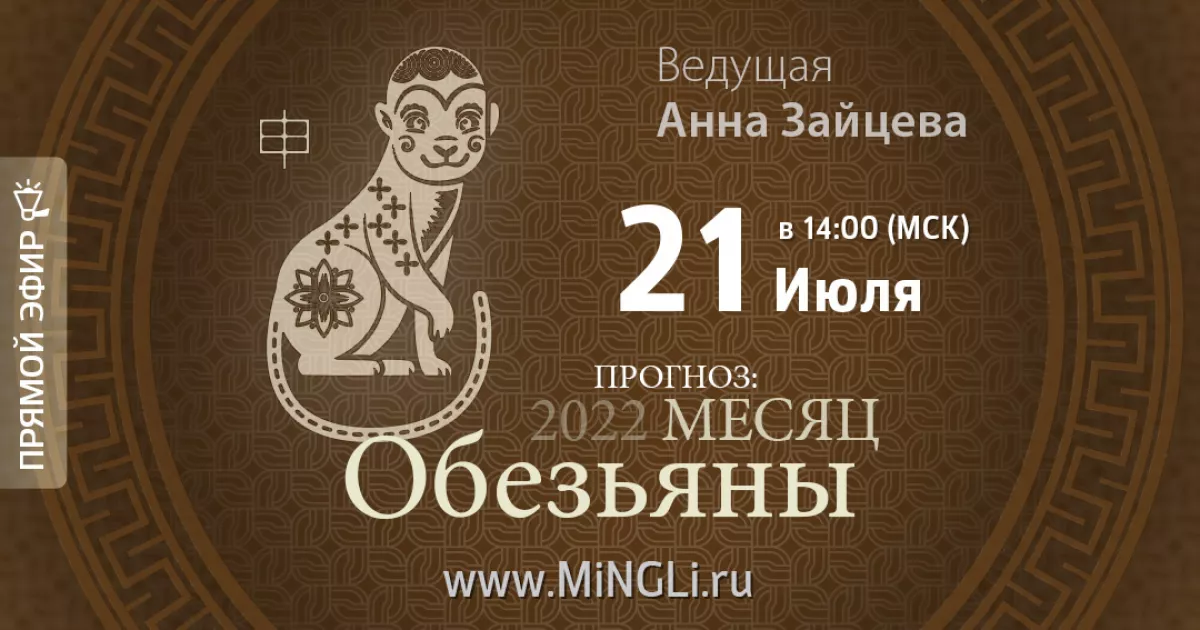 Приглашаем на эфир «Бацзы: прогноз на месяц Обезьяны (август) 2022 года» (прогноз по бацзы, прогноз на июль 2022)