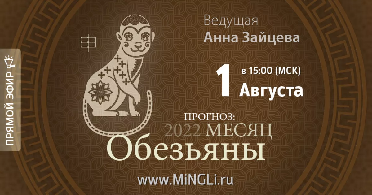 Приглашаем на эфир «Бацзы: прогноз на месяц Обезьяны (август) 2022 года»