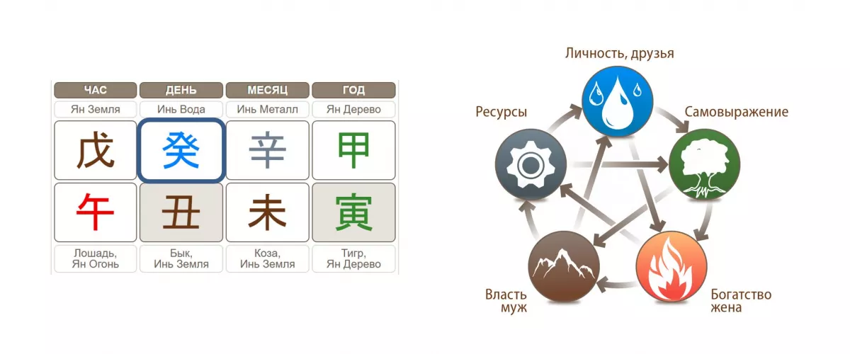 Теперь давайте посмотрим, что же принесет год конкретным людям, если смотреть по Дню рождения. Зайдите на калькулятор Минли, рассчитайте свою карту Бацзы и посмотрите, как называется верхний иероглиф дня. Это и есть ваш Господин Дня, Элемент личности.