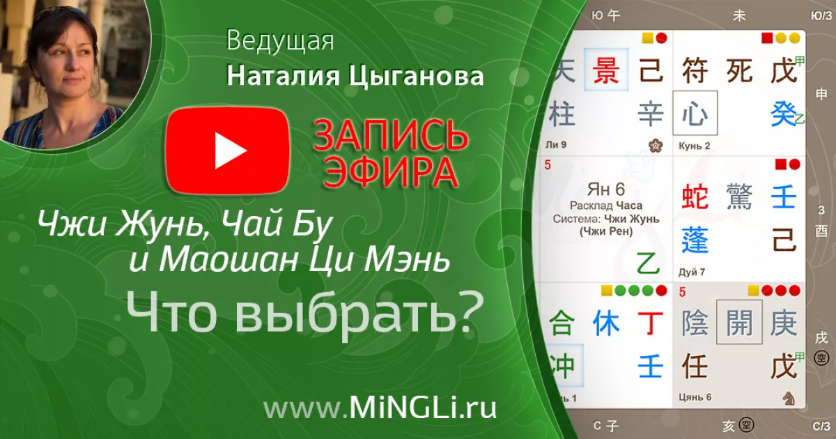 Видео эфира Наталии Цыгановой «Чжи Жунь, Чай Бу и Маошан Ци Мэнь – что выбрать?» (ци мэнь видео, системы ци мэнь)