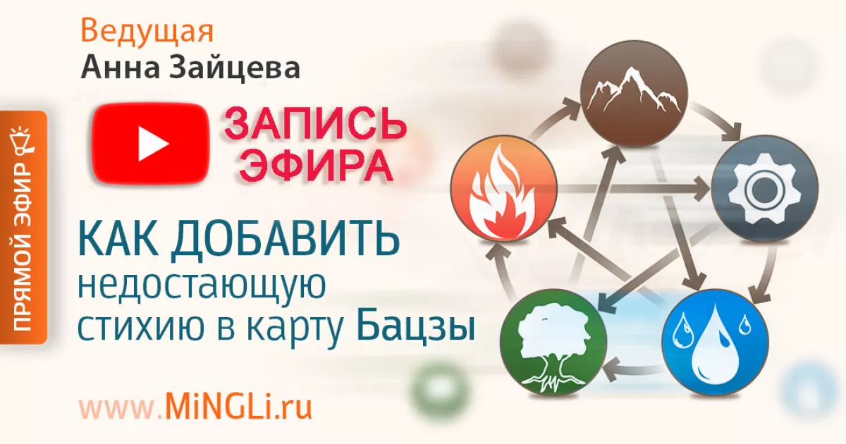 18 августа состоялся прямой эфир с Анной Зайцевой на тему «Как добавить недостающую стихию в карту Бацзы»