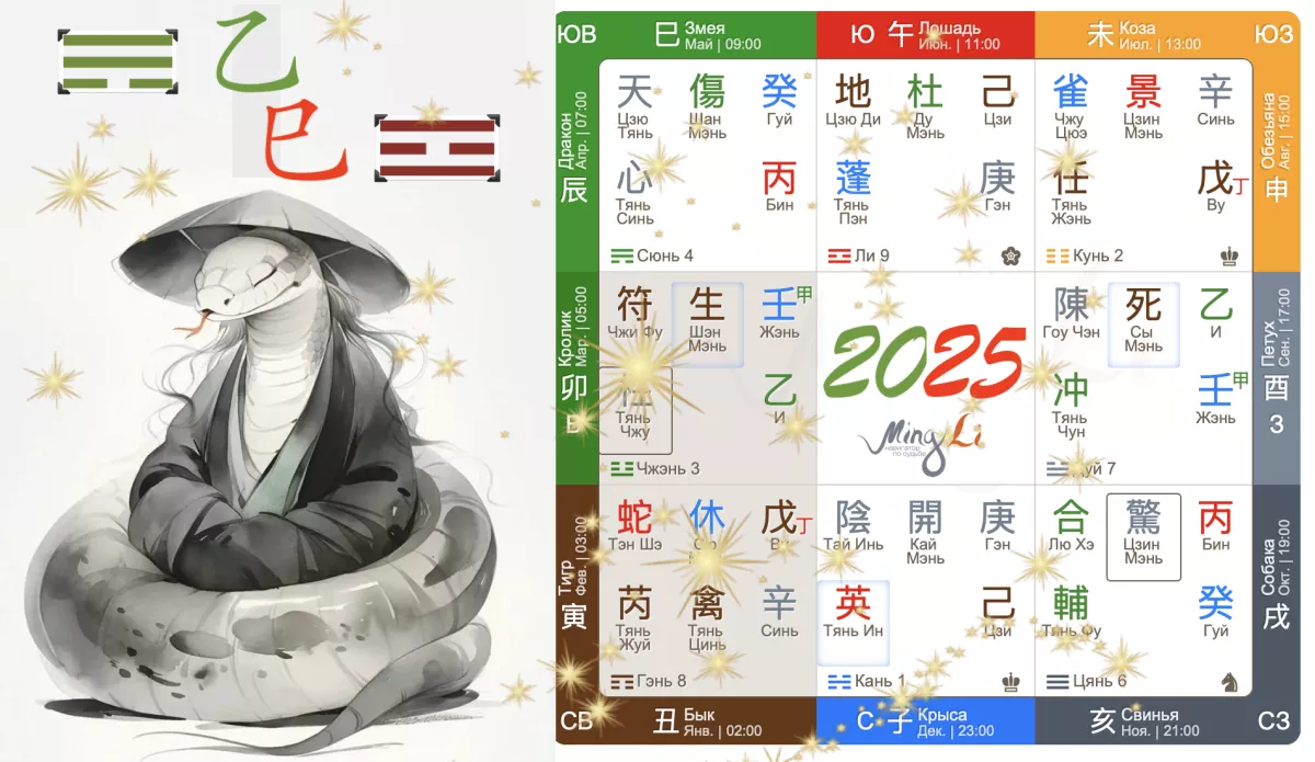 Годы предшествующие – 2022, 2023 и 2024 – с преобладающим водным элементом наверняка дали четкие сигналы тем, кто еще размышлял на тему, полезна его карте Вода или нет. Тех, кого интенсивные водные процедуры немного утомили, можно порадовать: по маршруту на 2025 смена энергий, ведь год у нас Дерево Инь на Змее 巳.