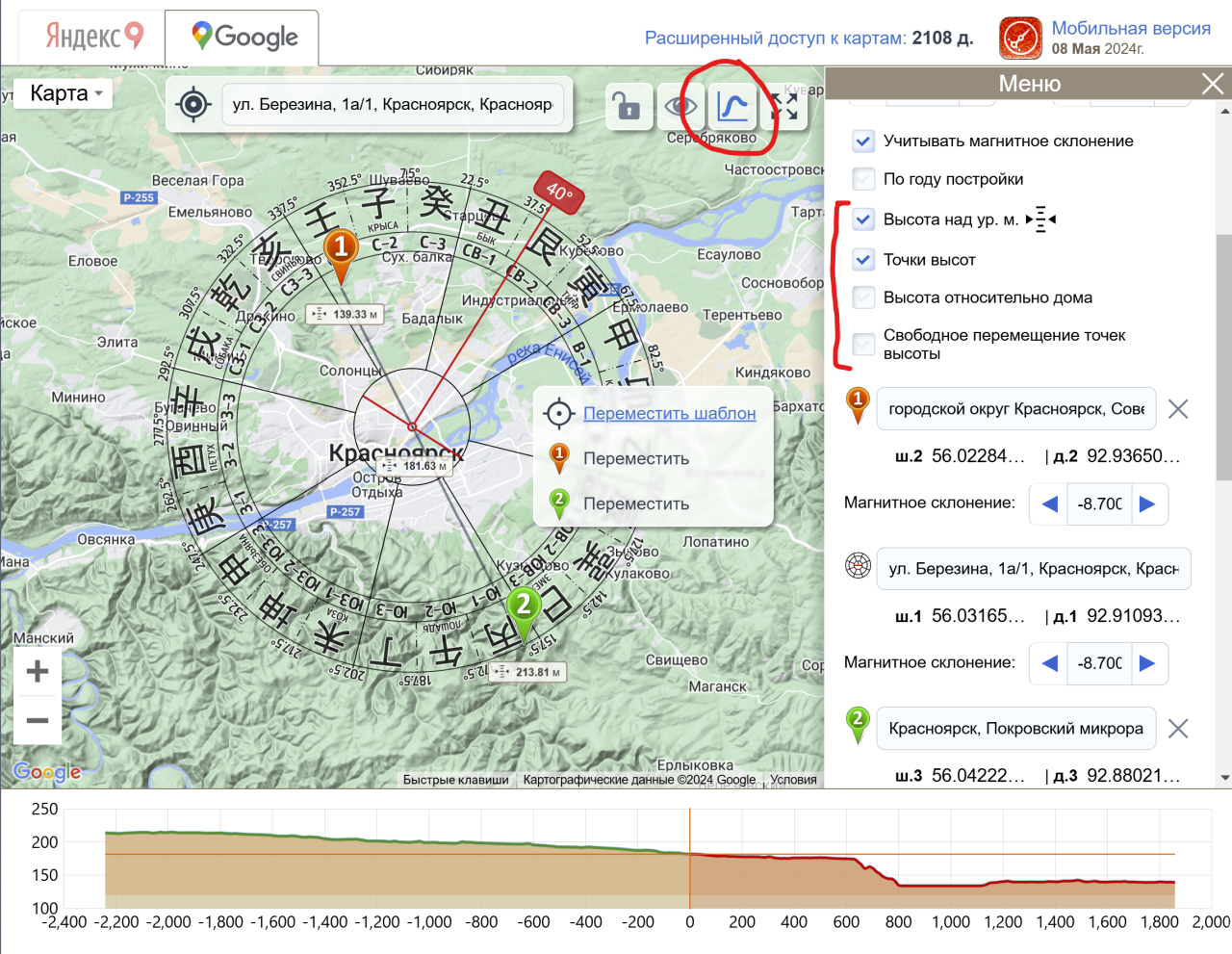❓ Для чего это нужно? Для того, чтобы определить уклон ландшафта для анализа Сань Хэ или по Императорскому Фэн Шуй, посмотреть, выше или ниже дома находится тот или иной объект. Если вы планируете найти Водный Рот, выберите тип отображения «карта» или ландшафт».