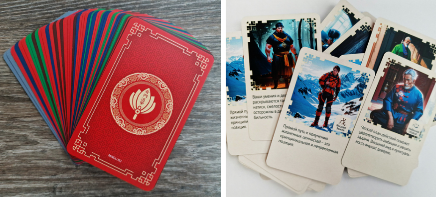 Эти карты по достоинству оценят как практики Ци Мэнь Дунь Цзя, так и начинающие. Уникальные картинки, наш собственный дизайн. На каждой карте есть ассоциативная картинка, иероглиф, его название и краткий совет.