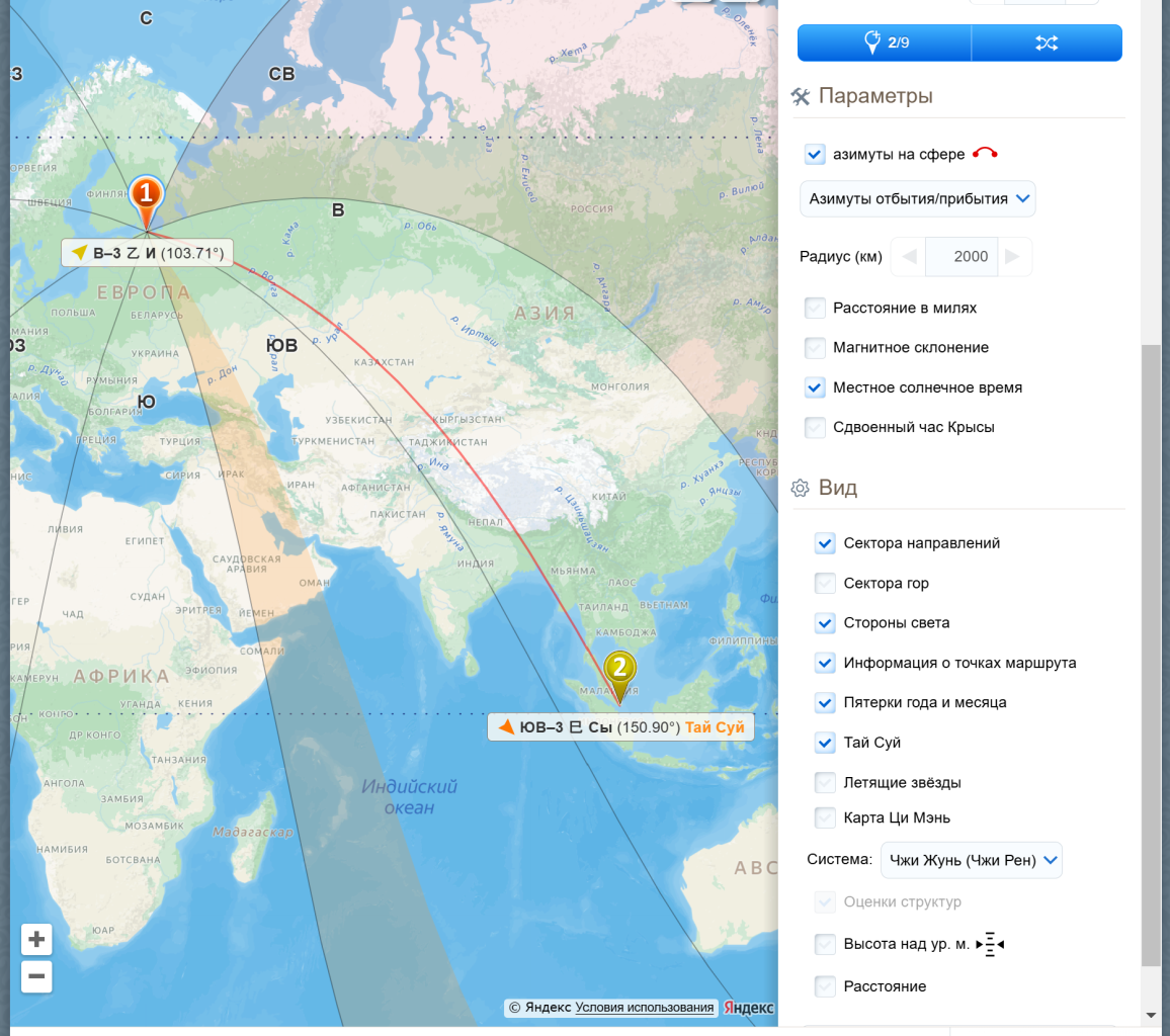 Я обычно использую азимут прилета для путешествий с перелетом до 6-8 часов. Если вы летите с пересадкой, но не ночуете в месте транзита – смотрите конечную точку путешествия. Если ночуете – рассматривайте весь путь, как две отдельные поездки. Перелеты между континентами с пересадками и сном в самолете довольно сильно «запутывают» Ци и их влияние не так сильно, как 3–6 часовых перелетов. В этой ситуации (когда перелет очень долгий и выматывающий) вы можете посмотреть и азимут вылета и провести активизацию во время отправления. Поездки на автомобиле, с одной стороны, планировать проще, с другой – там важно и то направление, в котором вы едете достаточно долго. Зато с такими путешествиями можно виртуозно и с отличным результатом спланировать поочередную активизацию нескольких направлений, так как вы свободны в своем расписании.