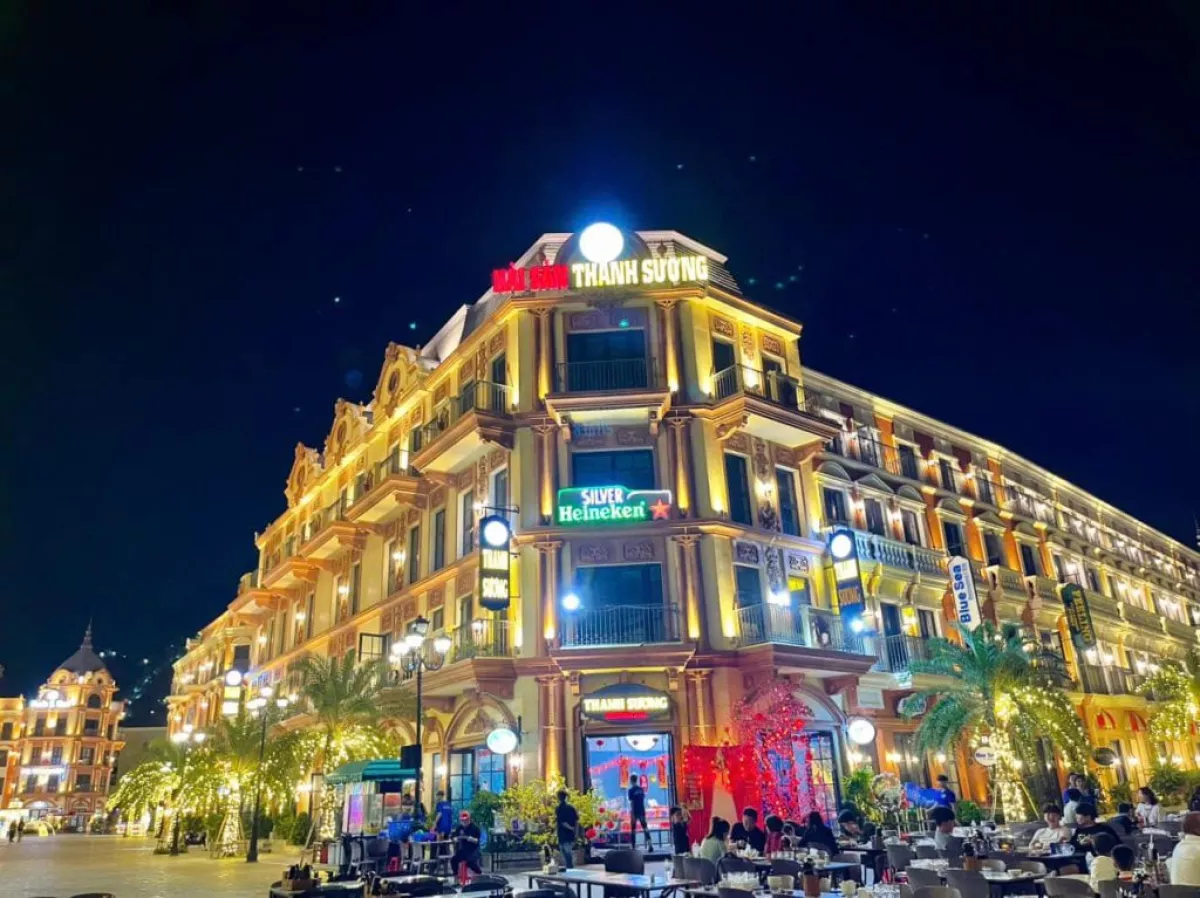 Теперь посмотрим на сам ресторан и на его оппонента. Thanh Sương (а нам рекомендовали именно его, причем посоветовали бронировать стол заранее) расположен в доме по левую сторону, вход с узкой стороны ресторана, в сторону горы, очень глубокое помещение; он принимает ци, спускающуюся с горы через оживленную площадь. С другой стороны дома есть еще вход; но это уже закуток с морепродуктами, куда надо подойти, чтобы сделать заказ. Он неглубокий и его дверь смотрит в сторону моря. На набережной рядами стоят столы, где постоянно сидят клиенты. 4,3 на Google, неплохо, но не идеал. При всей нашей любви к посещению разных мест, сюда за 10 дней мы умудрились сходить три раза, это своеобразный рекорд.