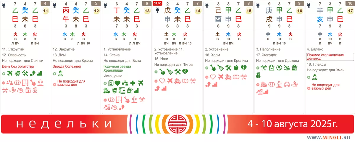 Рекомендации на неделю 4 – 10 августа (прогноз по базцы на август, ба цзы прогноз 2025, прогноз гороскоп на август, бадзы августа, прогноз на август)