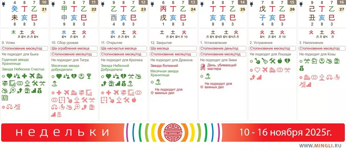 11 ноября, вторник. День 甲申 тоже не плохой, но Ша Ограбления придется учесть, а, значит, не подписывать важные документы, не отправляться в путь и не совершать спонтанные покупки, особенно крупные. В этот день благородные помощники сглаживают все процессы, поэтому больше он подойдет для переговоров (только окончательных решений по финансам не принимайте, вам они потом не понравятся). Тиграм точно не стоит торопить события.