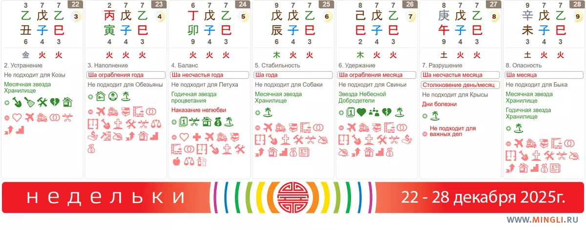 Рекомендации на неделю 22 - 28 декабря (ба цзы прогноз 2025, прогноз гороскоп на декабрь)