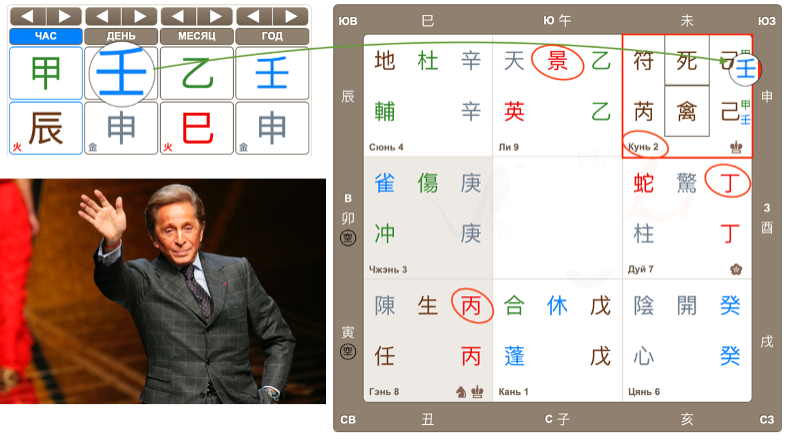 Есть в карте Валентино еще один важный фактор, который усилил это качество многократно и помог сделать судьбоносный ход. Речь о внутренней комбинации Звезде Тянь Цинь и глубине Врат Сы Мэнь. Ключ — в их активации временем. Когда наступил тот самый период, эта «тихая» энергия получила мощный внешний импульс. Она сфокусировалась, как солнечный луч через линзу, и выплеснулась тем самым фирменным красным, изменившим всю историю моды.