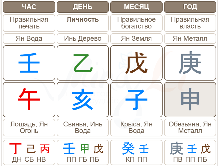 Крыса находится в слиянии с земной ветвью года — Обезьяной, вода усилилась, сырость и холод преобладают. Получается, Дерево у неё в карте практически без корней — укоренение в земной ветви отсутствует, и при этом оно сильно залито водой. Это говорит о дисбалансе в карте, который влияет и на события жизни, и на здоровье.