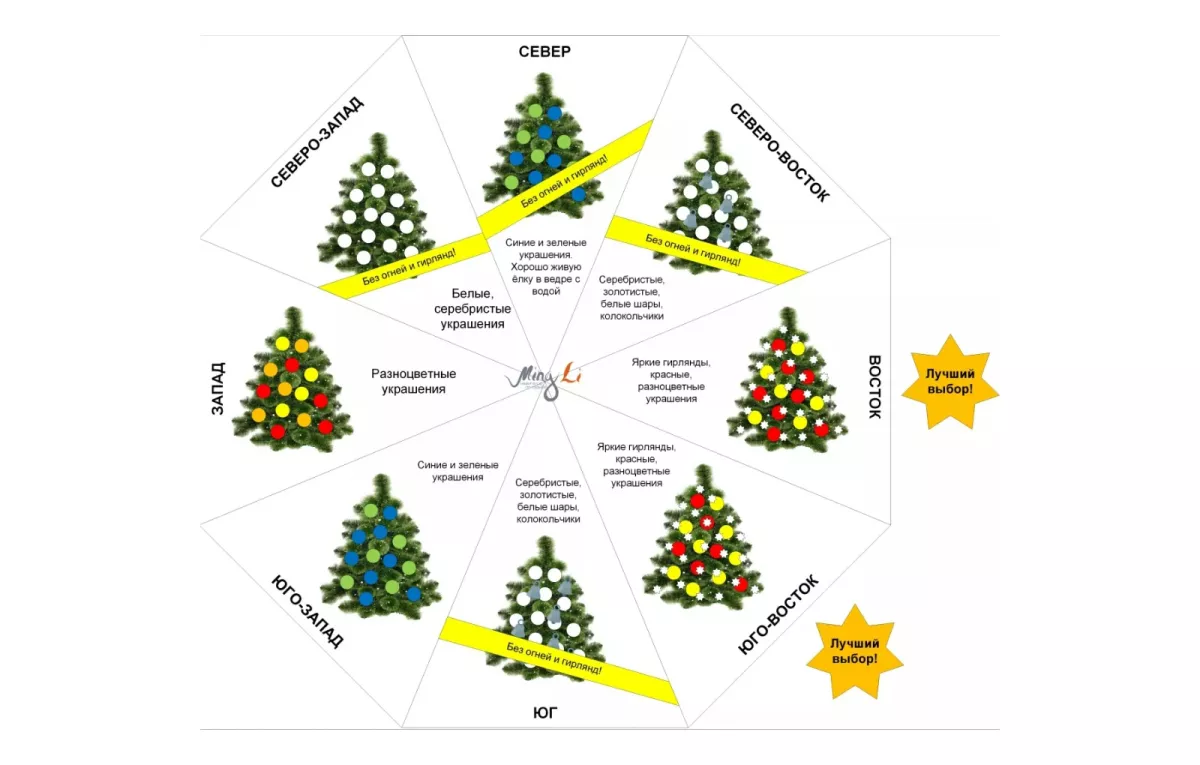 Наталья, спасибо за полезную информацию. Можно уточнить, гостиная на западе, можно ли использовать ЮЗ сектор по малому тайчи для установления елки, используя синие и зеленые украшения?Спасибо.