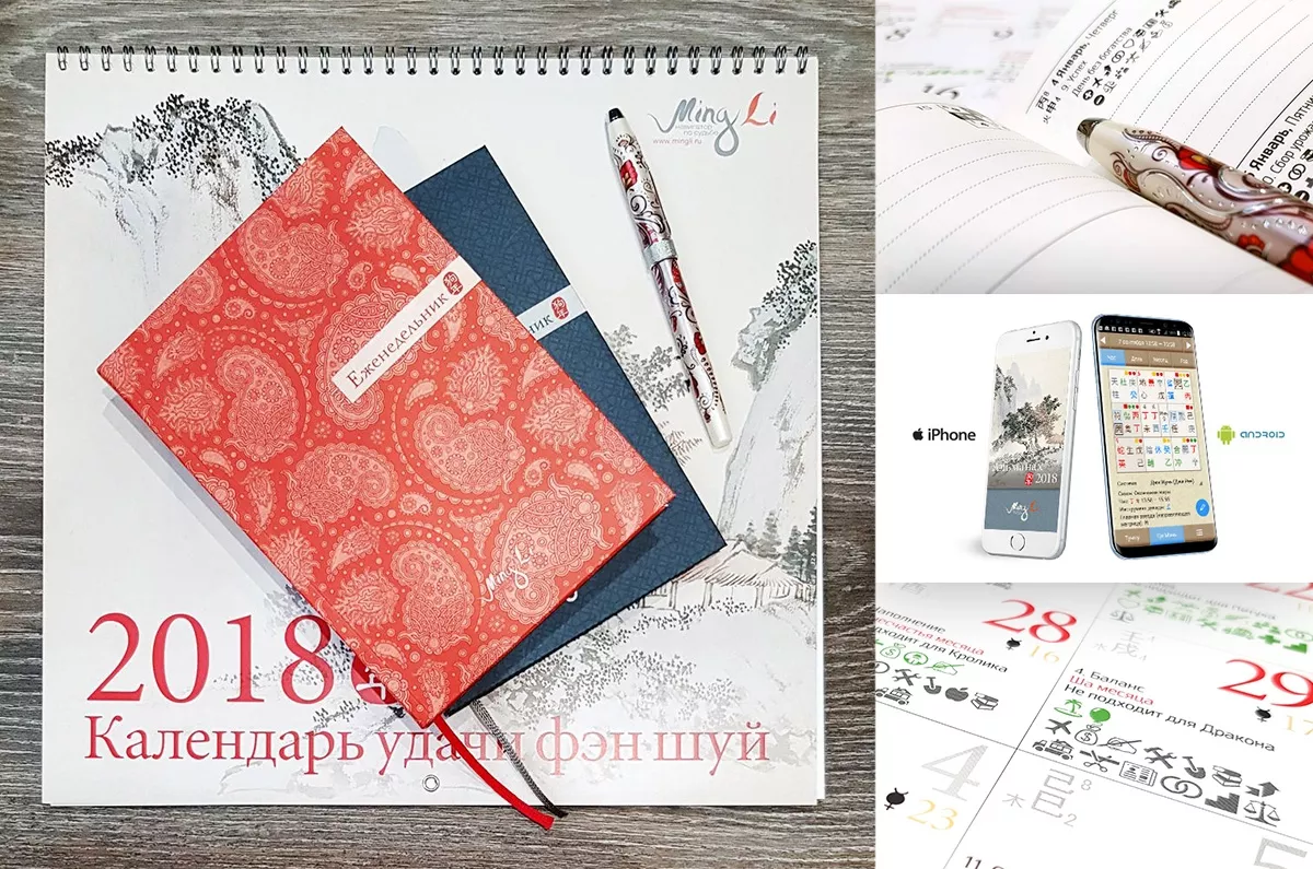 Для тех, кто привык активно пользоваться телефоном – также хорошая новость: Альманах 2018 и  Календарь удачи фэн шуй 2018 на IPhone и Android уже в продаже. Альманах на IPhone ищите в Appstore!
