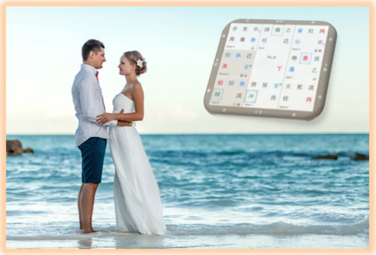 Мужчина разборчив, он хочет найти свою женщину, ту, которая предназначена ему судьбой. Недаром ствол его желанной половины , расположился во дворце Ли – там, где персиковый цвет ствола 庚. Но, до этого часа такой он еще не встретил - мы наблюдаем преодоление между стволами и .